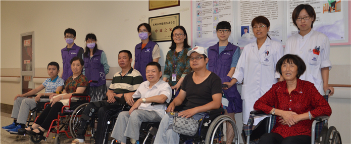 “中途之家”首批5位脊髓损伤患者今日一同来到苏州明基医院,由医疗志工引导着参观医院康复科。接下来的三天,5位伤友将入住苏州明基医院,参加由医院康复科开展的轮椅使用技巧、站立训练、辅助具及矫形器使用教学、肌力训练等课程。