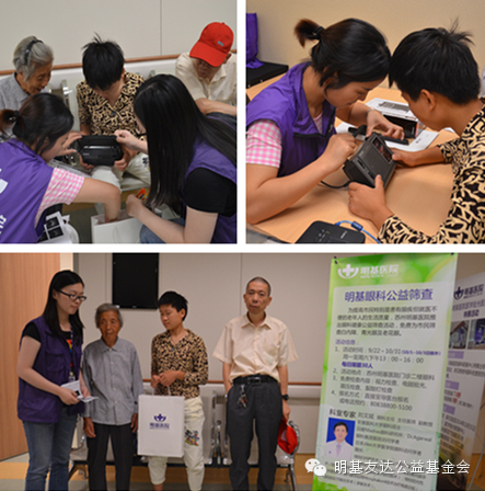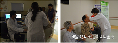 谈笑间已经来到明基医院,医院眼科的刘文斌主任、万丽主任以及其他的同仁们细心安排并陪同祖孙三人进行各种眼部检查。当得知爸爸的眼部神经已经完全萎缩没有救治的希望后,三个人沉默了。爸爸无神的眼睛里透露出阵阵失望,但很快就调整好心态了,依然笑着陪老母亲和女儿进行检查。蔡阿婆的眼部症状相对比较轻,救治有希望;小妹妹的左眼还有些许光感,右眼情况不是很好。